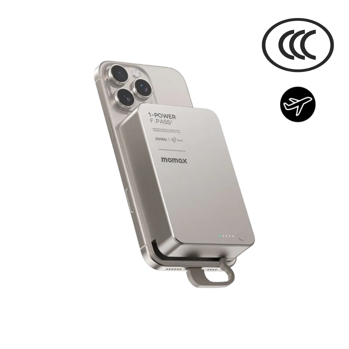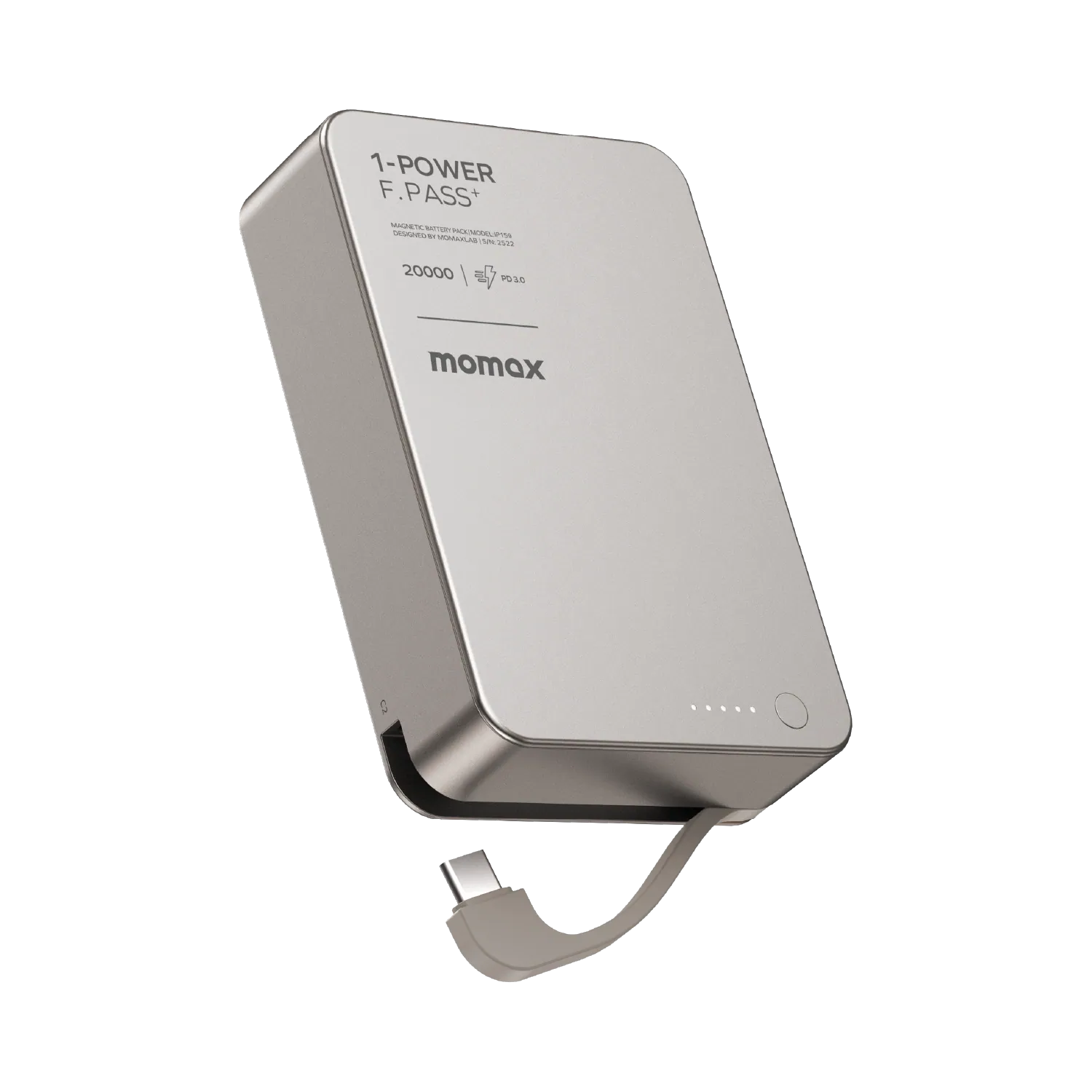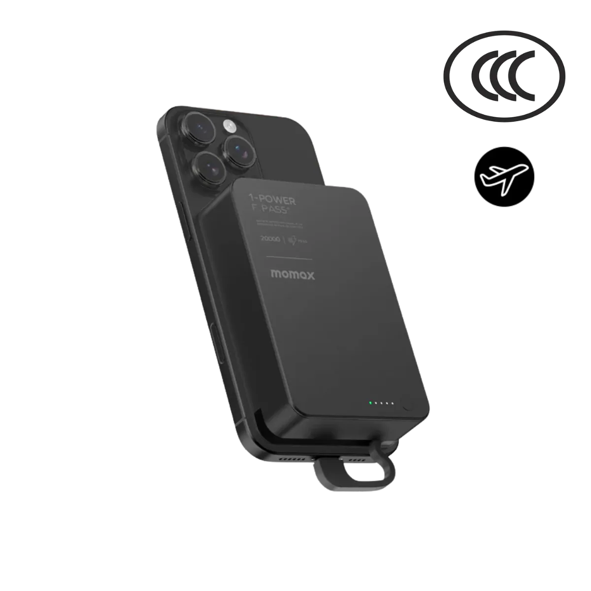 [CCC認證產品] Momax 1-Power F.Pass⁺ 20000mAh 磁吸帶線流動電源 IP159