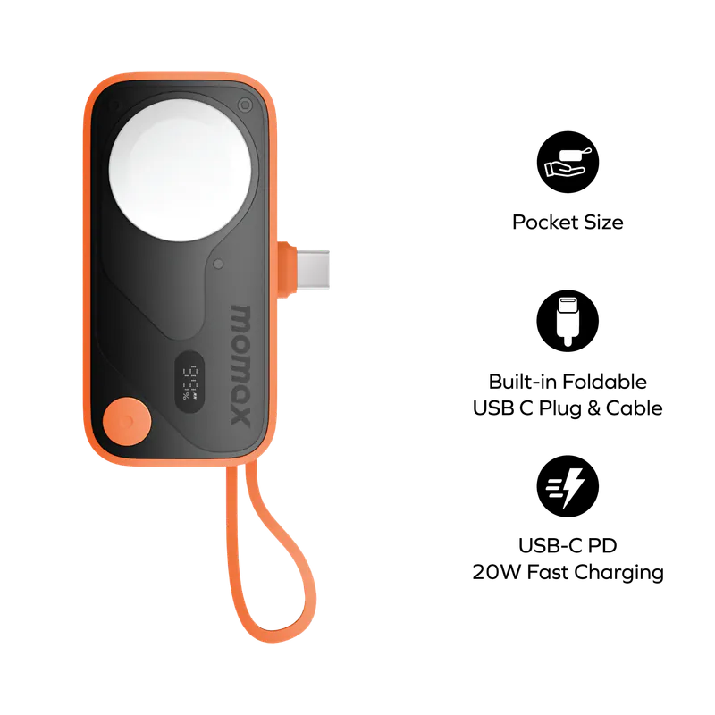 Momax 1-Power X Pro Mini⁺,您的終極移動伴侶!這款三合一行動電源融合了尖端科技與卓越便攜性,為現代生活方式提供卓越的快速充電體驗。無論您是在旅途中為裝置充電,還是在午休時為 Apple Watch 充電,這款時尚的行動電源都能讓您保持領先
