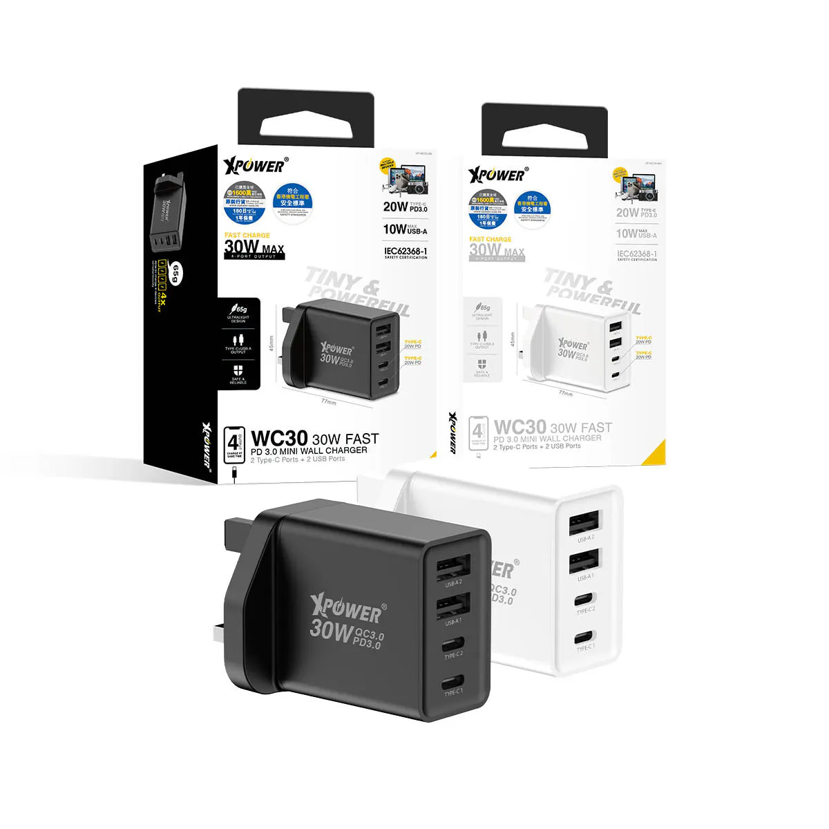 XPower WC30 30W市上最小4輸出PD 3.0迷你快充充電器