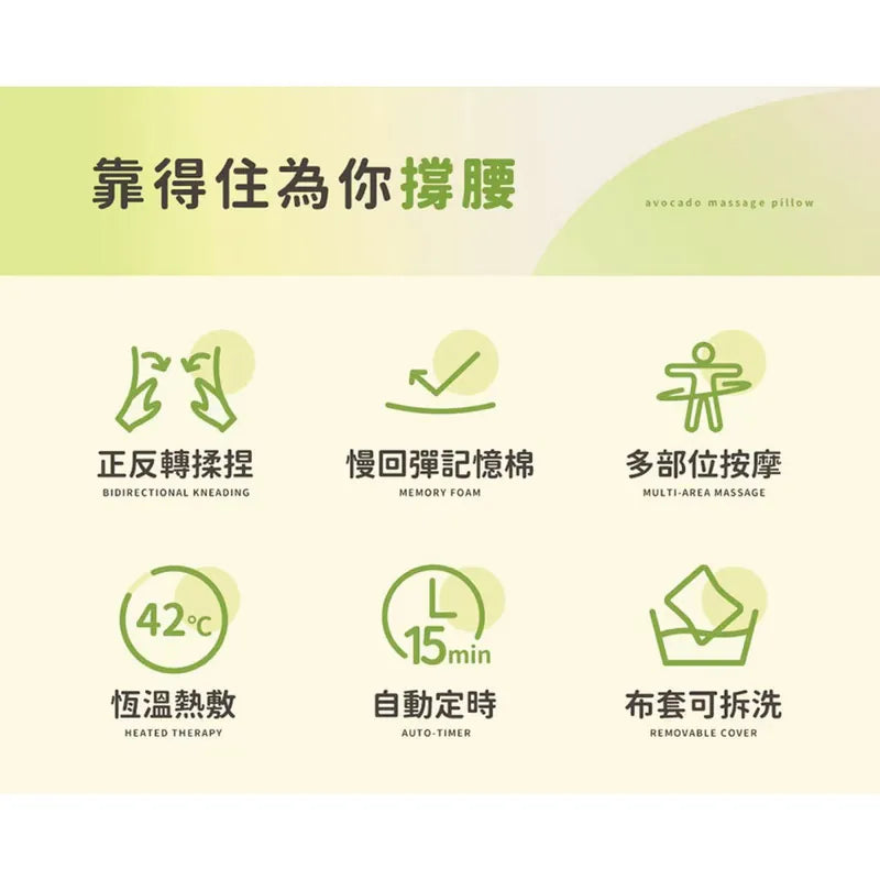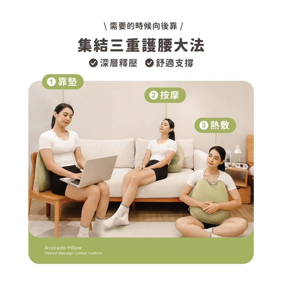 台灣 3ZeBra - 酪梨枕 溫感按摩腰靠枕 (三合一按摩枕)