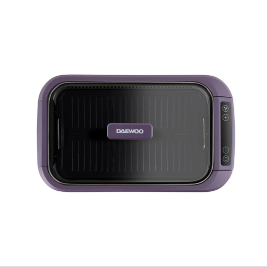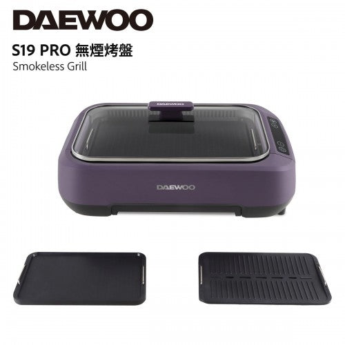 韓國大宇推出最新的S19 Pro 無煙燒烤爐,產品採用薰衣草紫色, 機體線條圓滑流暢, 雙U型發熱管設計, 使整個烤盤加熱無死角,更能轉換受熱均勻,燒烤時無需經常翻動食物,另産品的雙重控煙內核芯設計,採用內循環吸油煙,水冷過濾技術,側面有35個垂直吸風口,快速吸風抽煙。數碼面板設計實時顯示溫度, 操作更容易, 另抽屜式接油盤設計, 方便清洗。