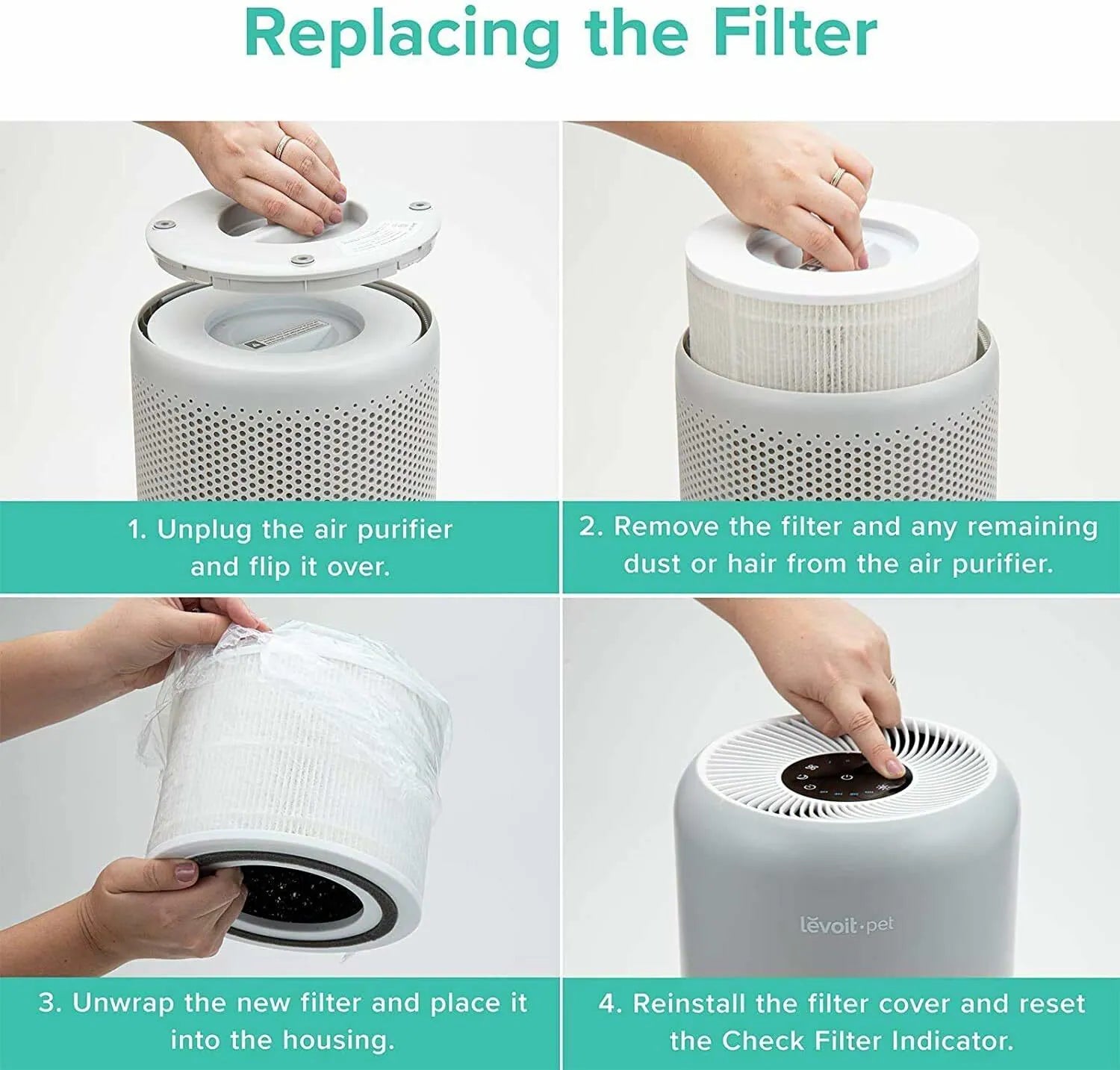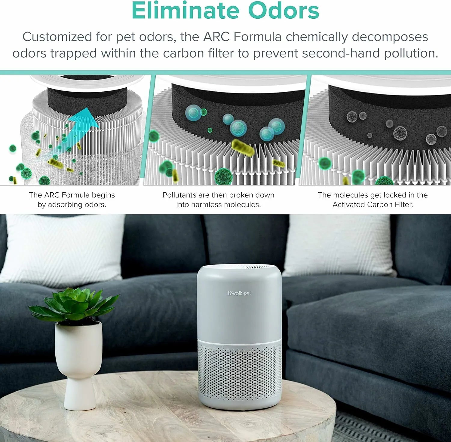 Levoit Core P350 配備H13-Ture HEPA 濾網,有效過濾99.97% 0.3μm的微粒,同時配合ARC 配方可吸收並分解寵物異味,強效除臭。Levoit Core P350 擁有進階版的三重過濾設計,鎖定污染物,避免污染物重新釋放到潔淨的空氣中。