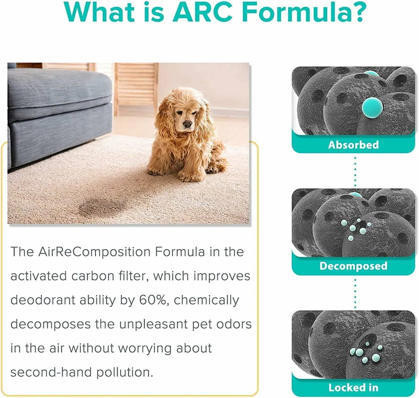 與其他濾網相比,Core P350-RF通過AirReComposition配方的除臭能力提高了60%,該配方可化學分解空氣中的不愉快氣味,無需擔心二次污染。