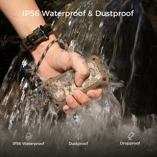 IP56 防水級別,防撞,在戶外使用更安心。此外,它還附有電筒照明及掛繩功能,讓你在戶外帶它不用怕。