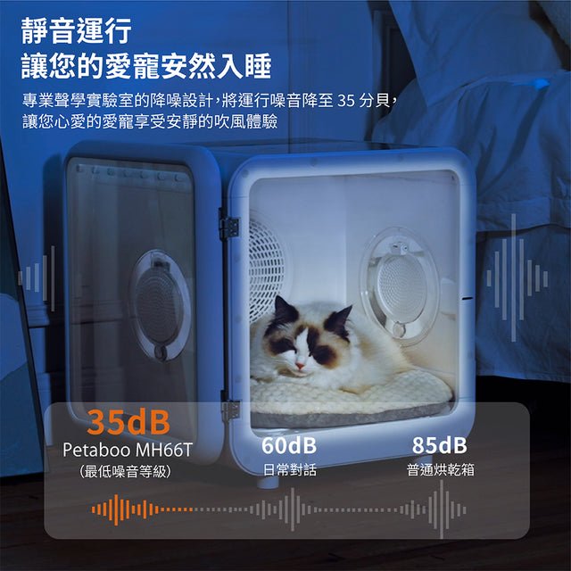 - 30-50dB低噪靜音設計營造安靜舒適的烘乾環境,有效緩解寵物因噪音產生的壓力反應