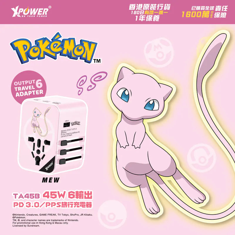 Pokémonミュウ 夢夢 Mew TA45B 45W 6輸出 PD3.0/PPS旅行充電器