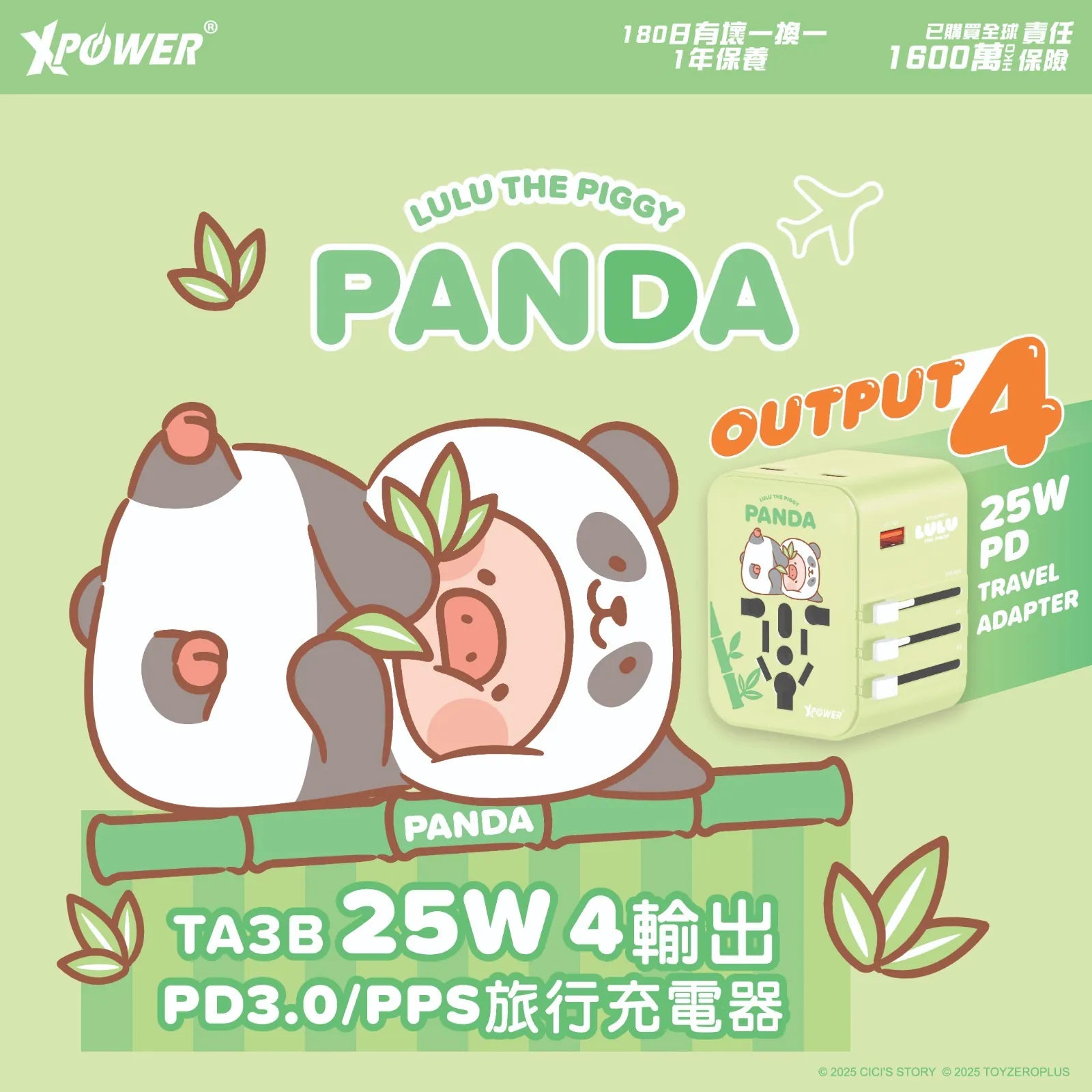 (送收藏卡) XPower x 罐頭豬LuLu🐷TA3B 25W 4輸出PD3.0/PPS旅行充電器