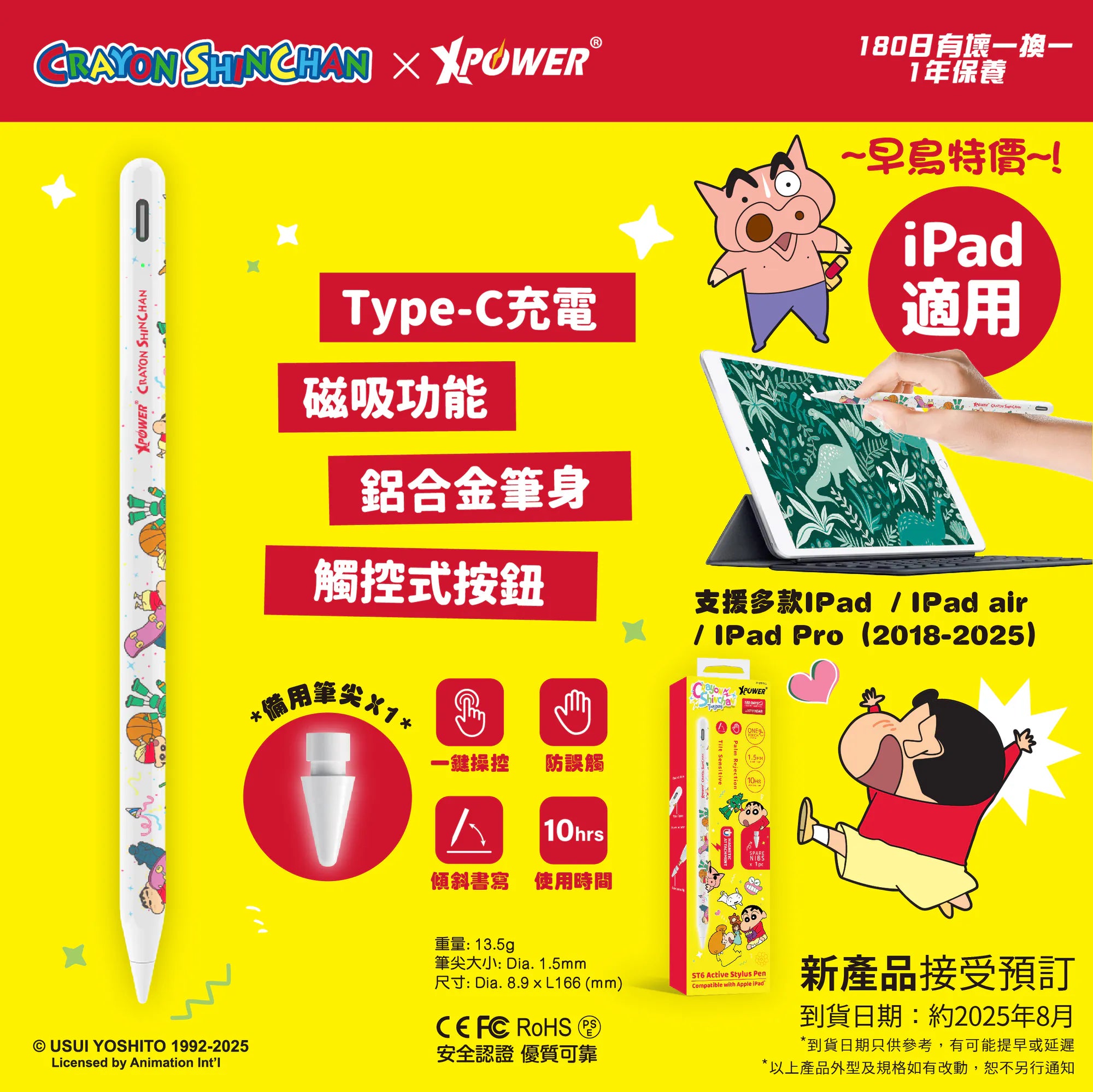 🧒🖊️ XPower x 蠟筆小新 ST6 磁吸主動式觸控筆(Apple iPad 專用)