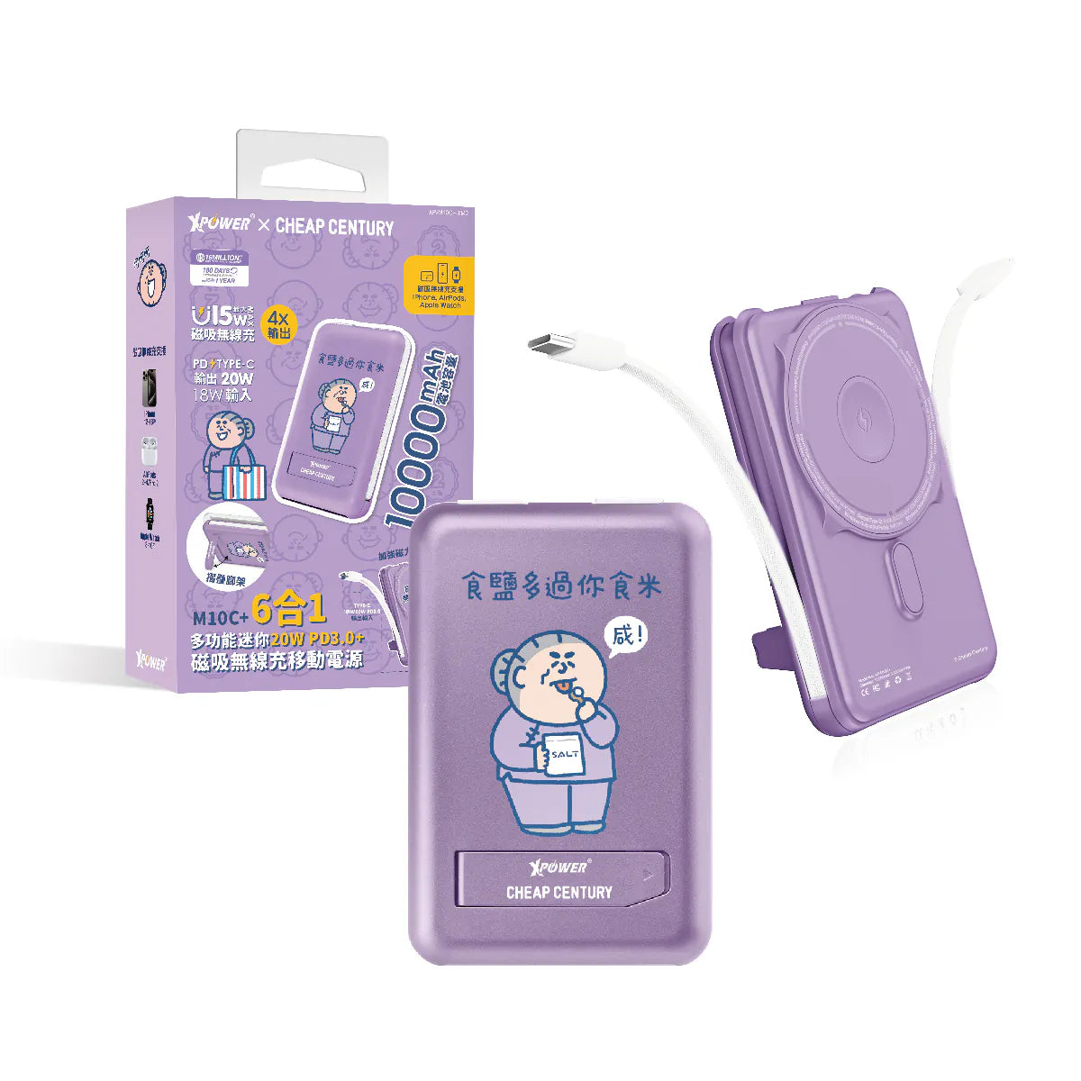 XPower x 阿婆 M10C+ 6合1 10000mAh多功能迷你20W PD3.0+ 磁吸無線快充移動電源