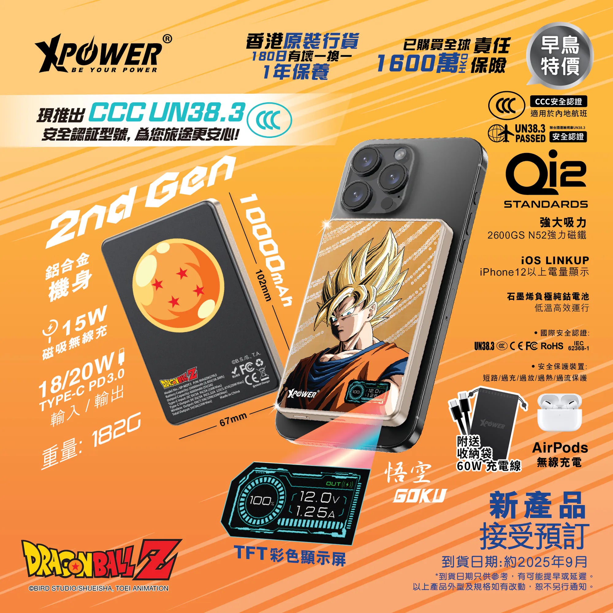 🟠⚡ XPower x 龍珠Z MagDigita² 彩屏磁吸移動電源(悟空款 / 3C版)