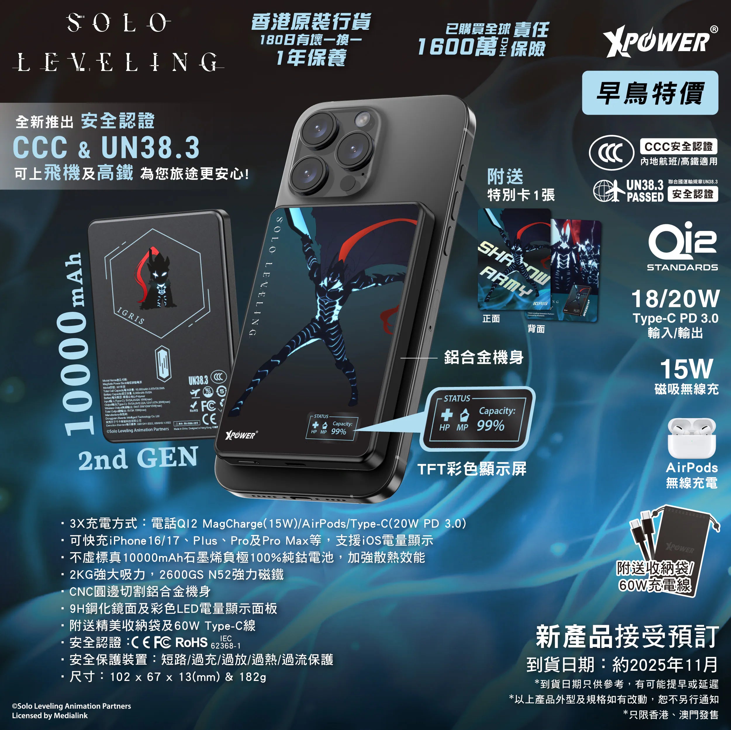 MagDigita2 第2代 Solo Leveling 彩屏顯示 鋁合金 10000mAh PD3.0+QI2 磁吸移動電源 MDT2