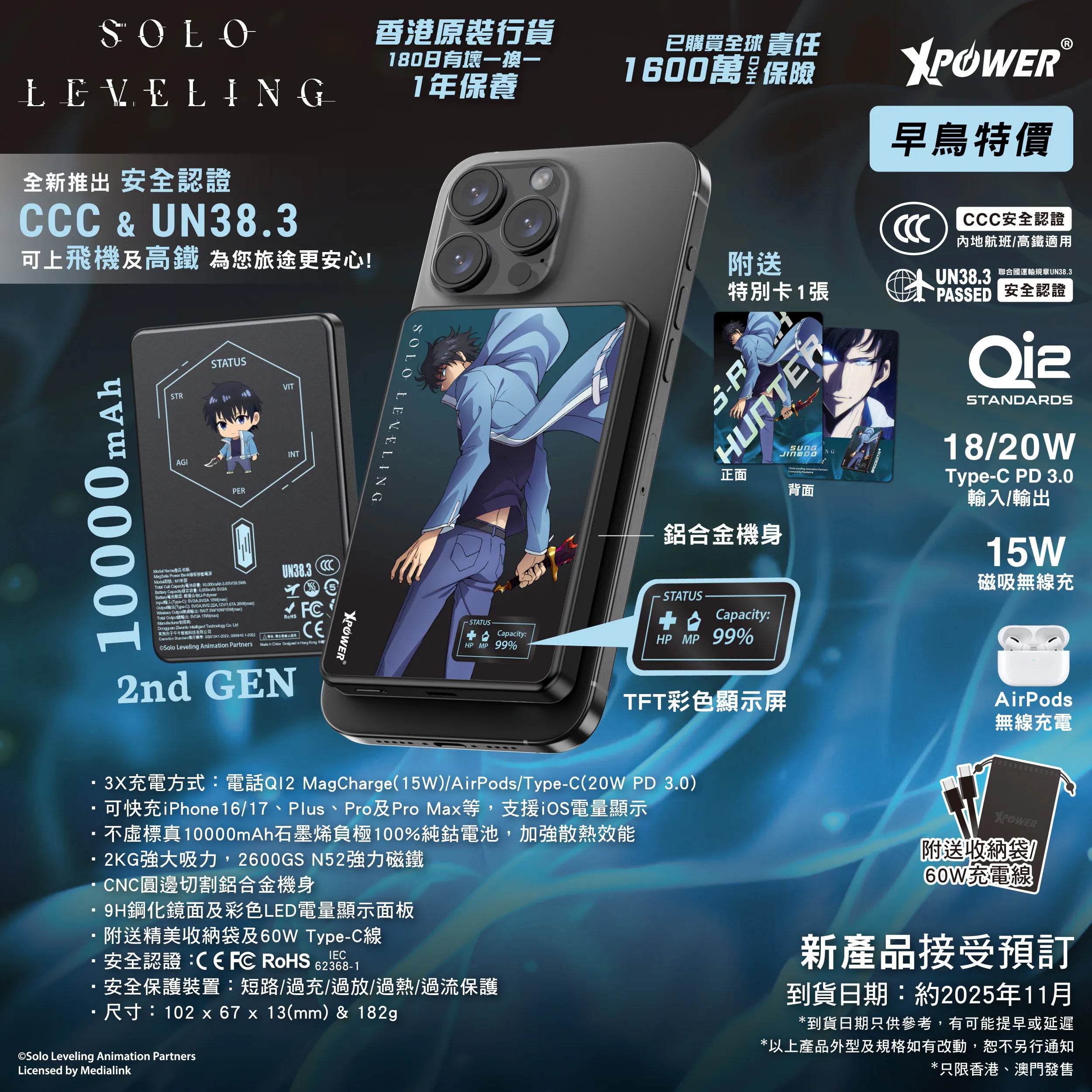 MagDigita2 第2代 Solo Leveling 彩屏顯示 鋁合金 10000mAh PD3.0+QI2 磁吸移動電源 MDT2
