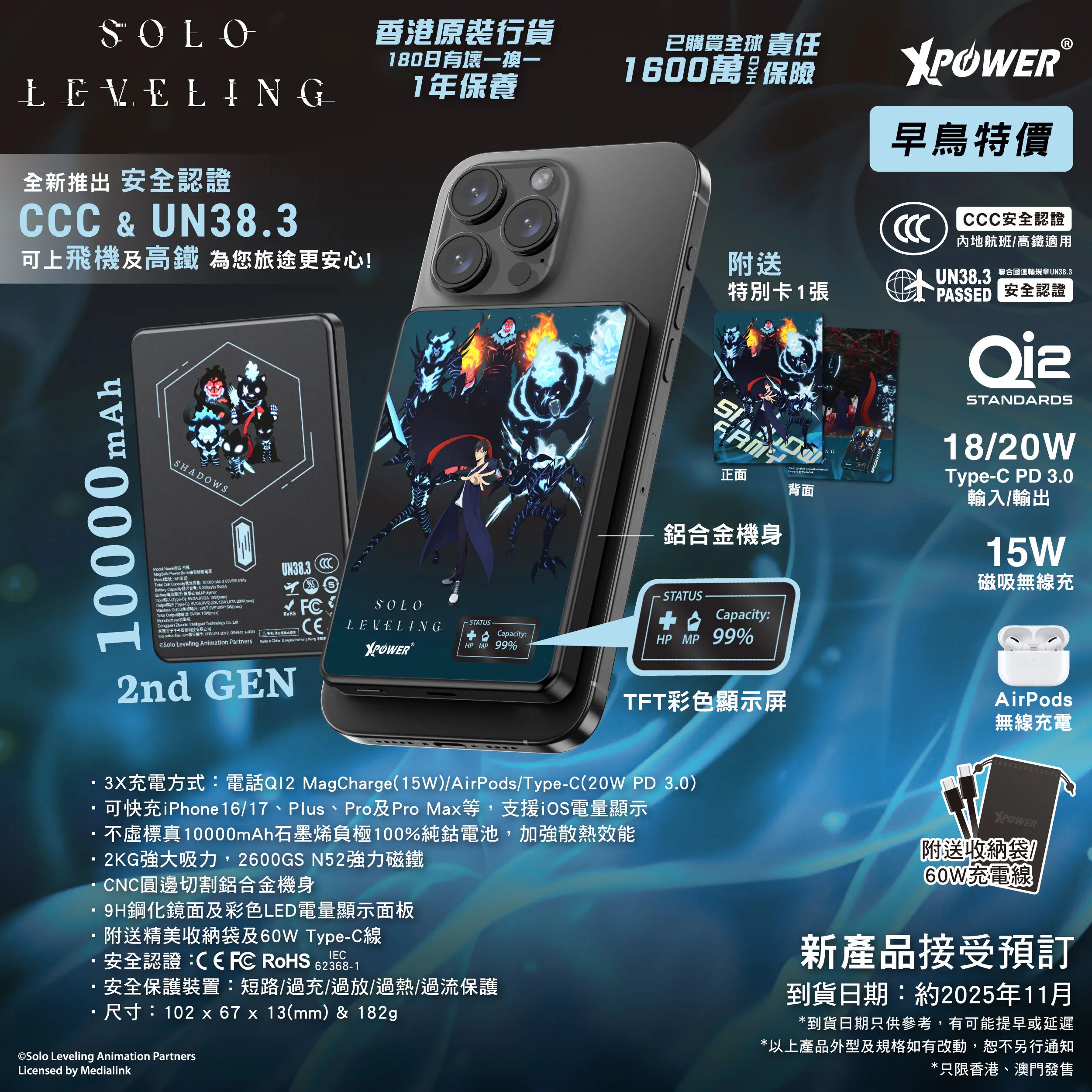 MagDigita2 第2代 Solo Leveling 彩屏顯示 鋁合金 10000mAh PD3.0+QI2 磁吸移動電源 MDT2