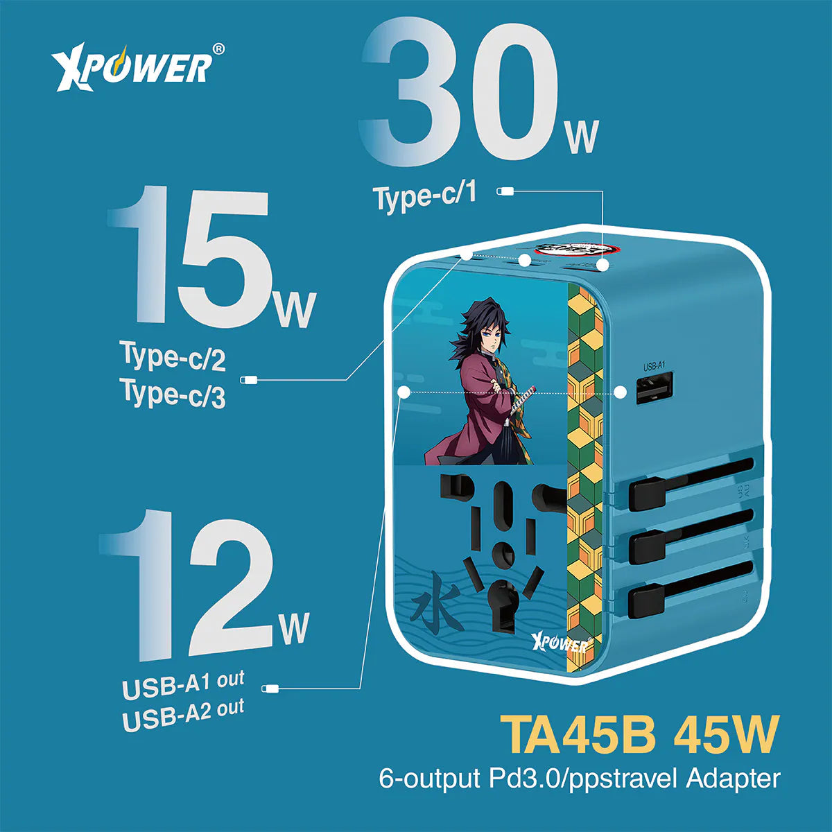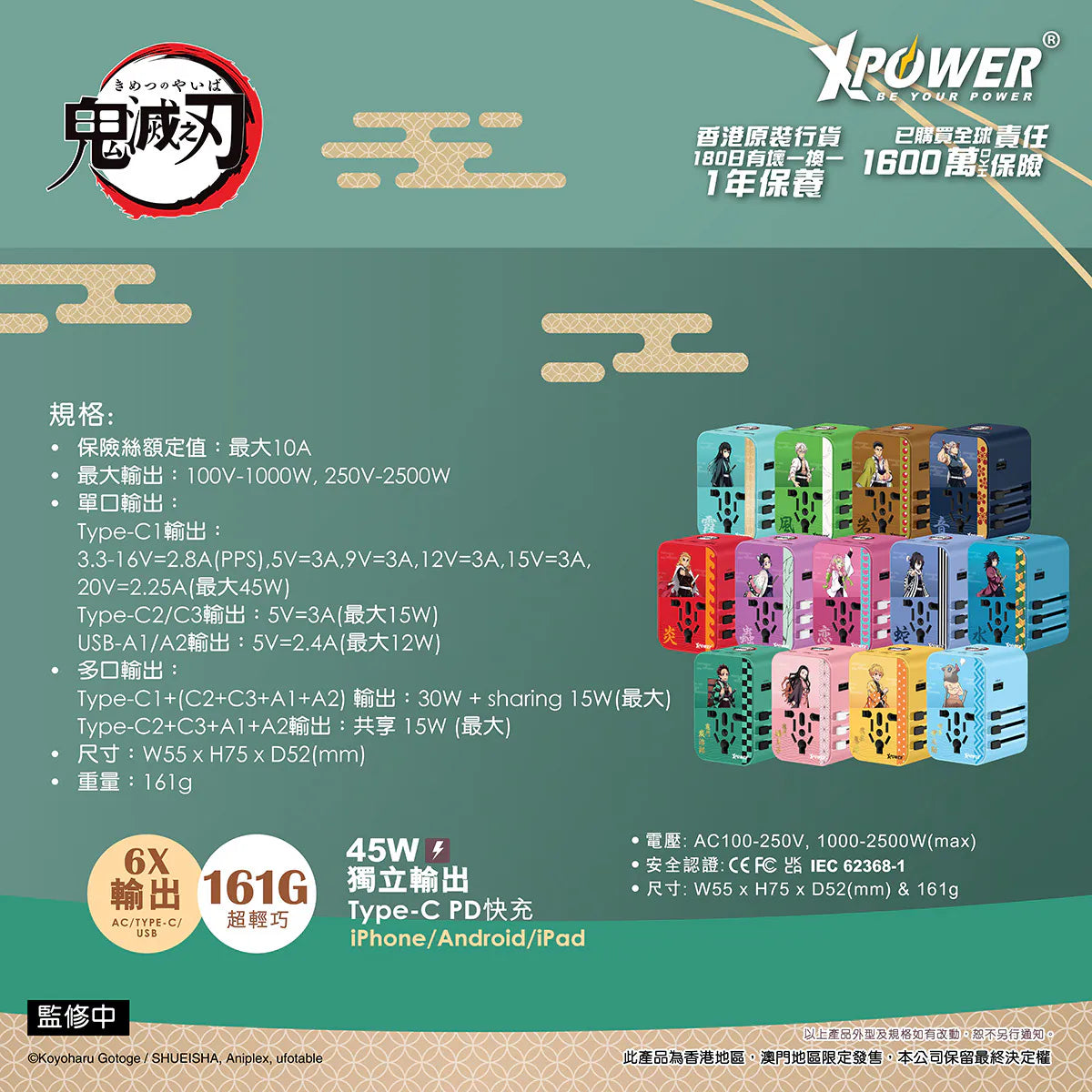 XPower x 鬼滅之刃 TA45B 6輸出 45W PD/PPSGaN旅行充電器