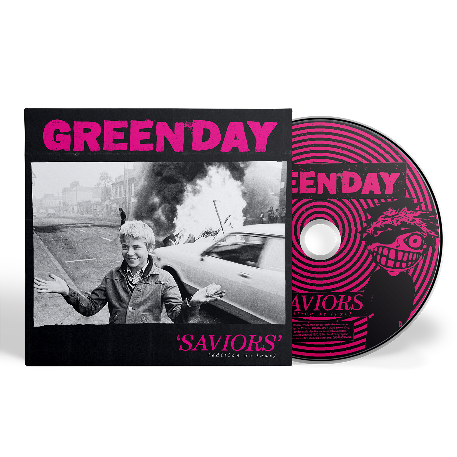 Green Day這張《Saviors 》(Deluxe Edition) CD特別多收錄了 7 首歌曲,進一步升級了專輯的叛逆精神與音樂火力。包括: "Smash It Like Belushi":一首充滿爆發力的歌曲,展現樂隊的經典朋克態度;"Stay Young":一首反思性更強的作品,展現了樂隊在叛逆之外的情感深度;"Fuck Off":直白而犀利的歌詞,成為樂隊對抗體制與不公的又一力作;"Ballyhoo"和"Underdog":充滿能量與挑釁意味的歌曲,延續了樂隊對社會現象的深刻批判;"Suzie Chapstick" 和"Father to a Son"的原聲版本:以更純粹的結他與人聲演繹,帶來不一樣的情感體驗。